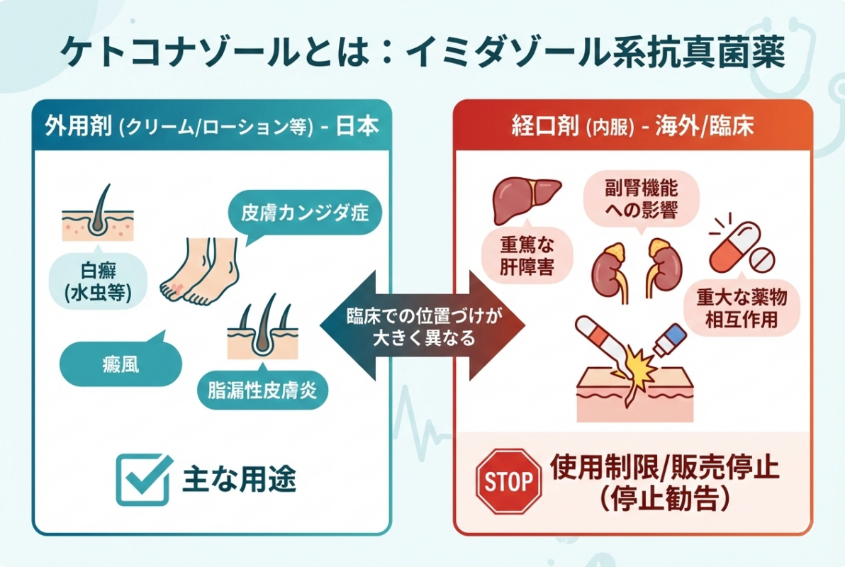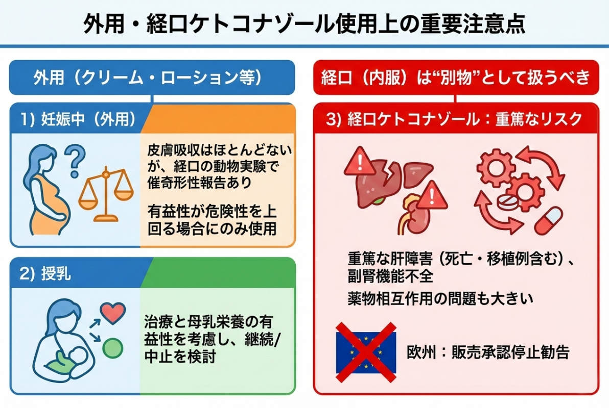 ケトコナゾールは同一成分であっても、外用と経口では安全性の前提が大きく異なります。